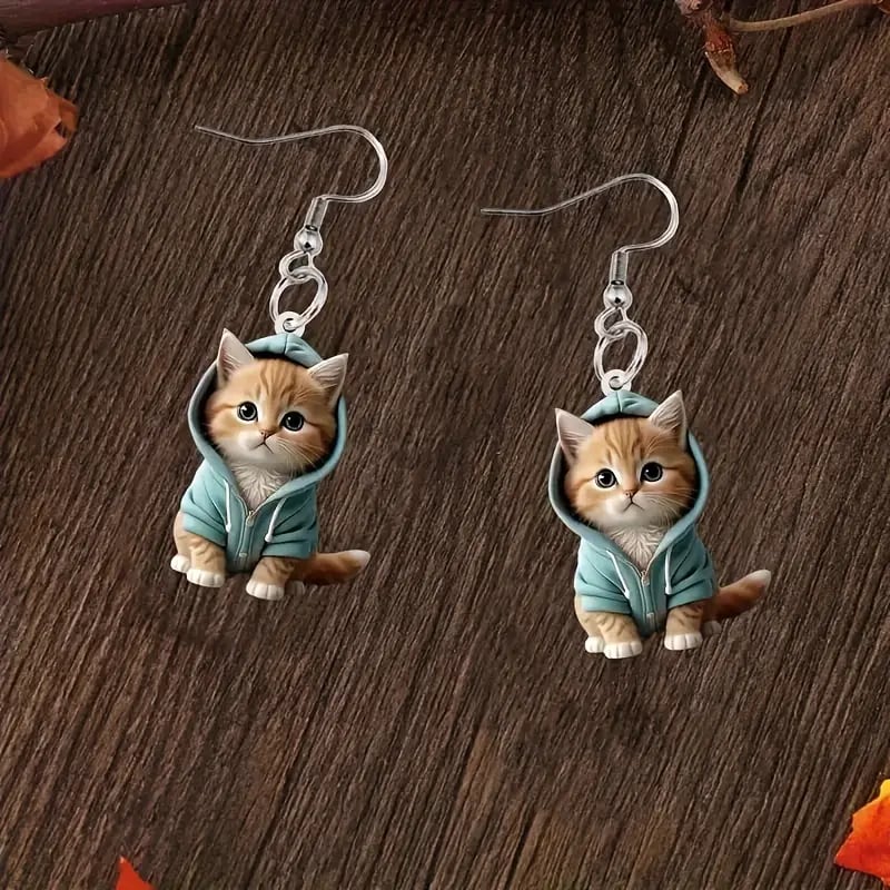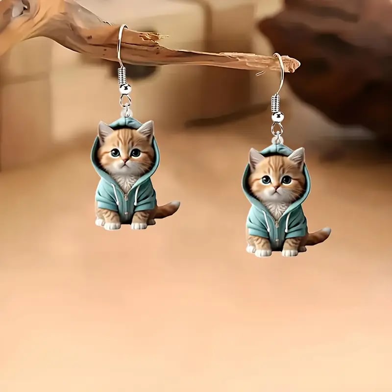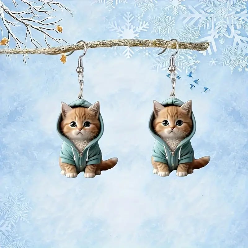 🐱 Unique Design: These earrings feature irresistibly cute kittens wearing tiny hoodies. bringing out a mix of warmth and fun. Perfect for cat lovers and anyone who loves whimsical accessories.