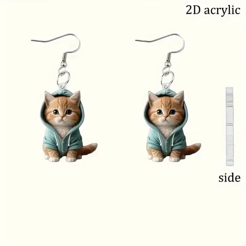 🌟 Exquisite Craftsmanship: Each earring is crafted with intricate details to capture the kitten's expressive face and cozy hoodie. making it a standout piece.