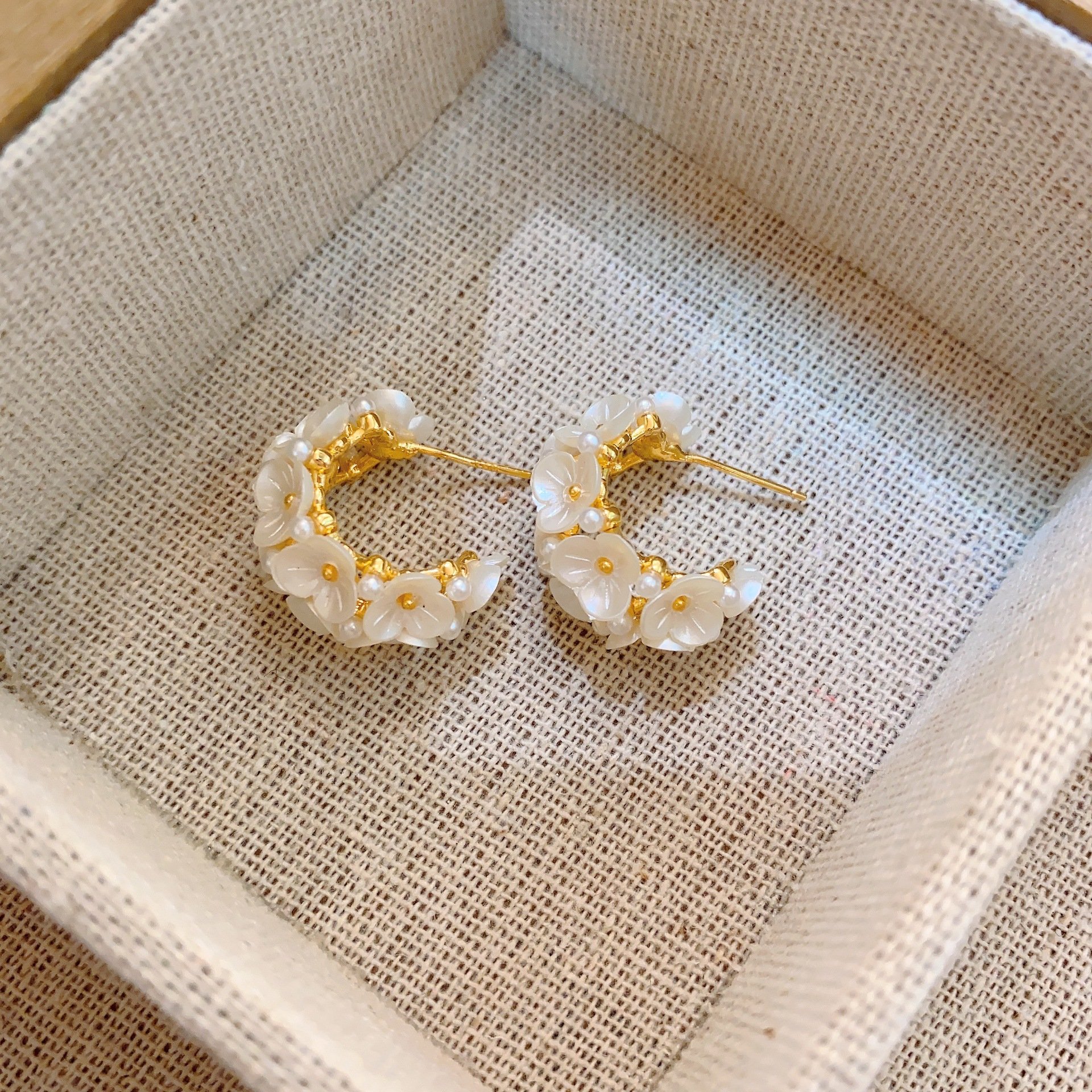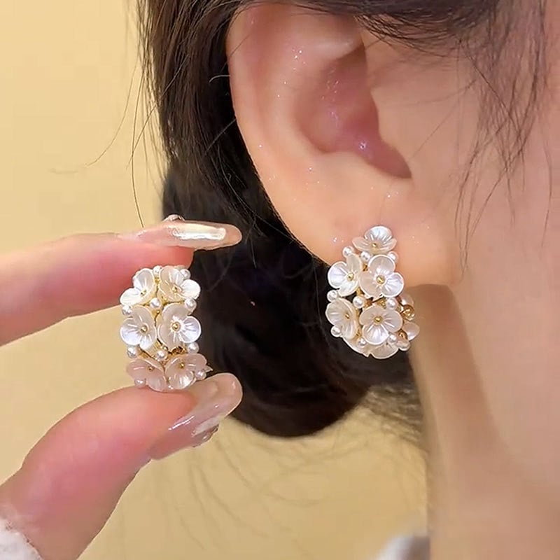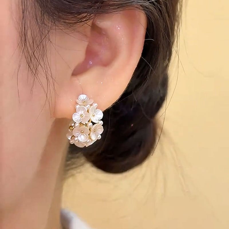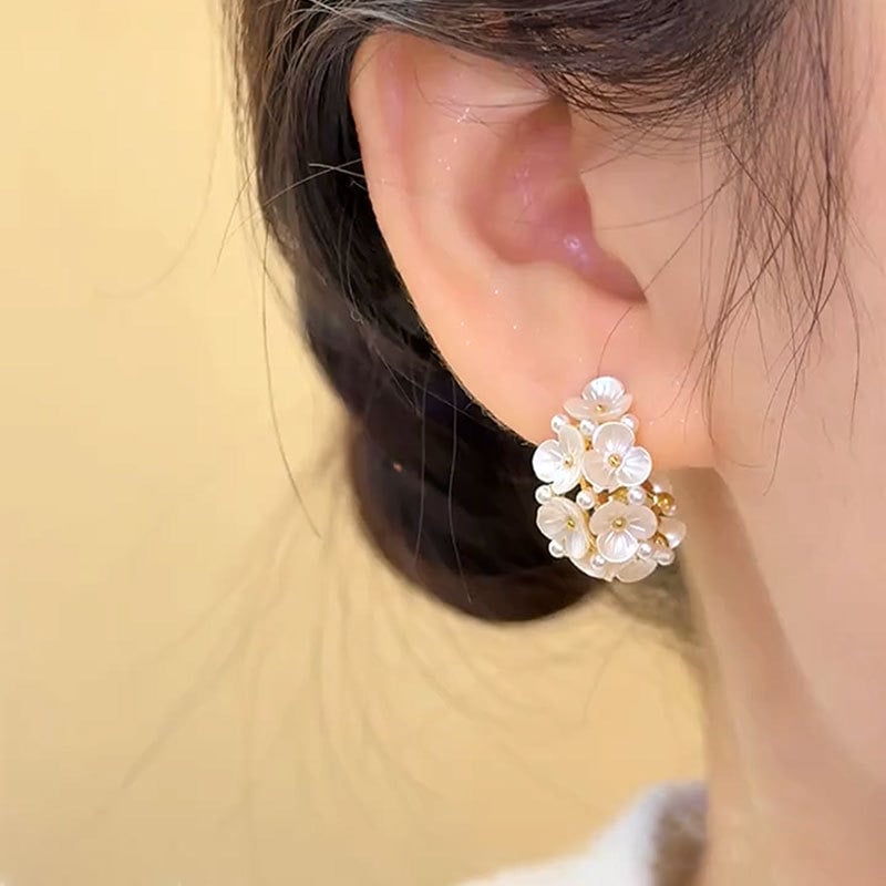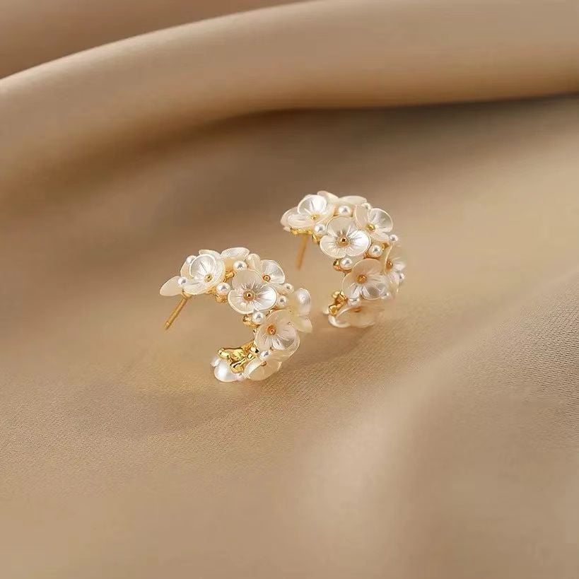 ✨ Exquisite Floral Design: Crafted with precision. each flower is delicately arranged to create a 3D effect that exudes charm and sophistication. The subtle gold plating blends seamlessly with the flowers. adding a warm glow that enhances the natural sheen of the pearls.