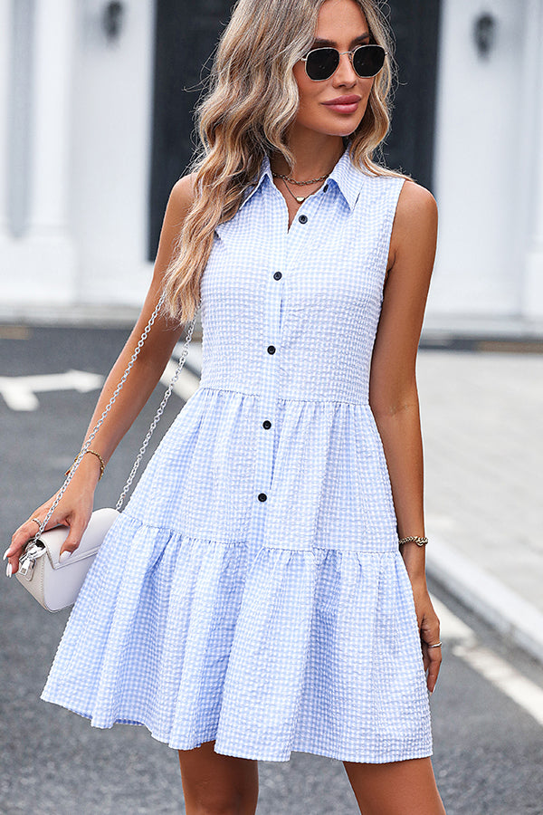 Fashion Plaid Print Sleeveless Ruffle Hem Dress